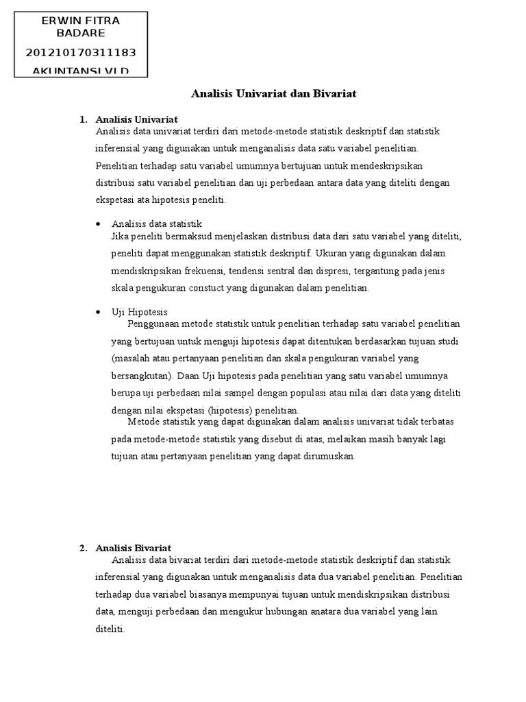 Analisis Univariat Dan Bivariat Pdf